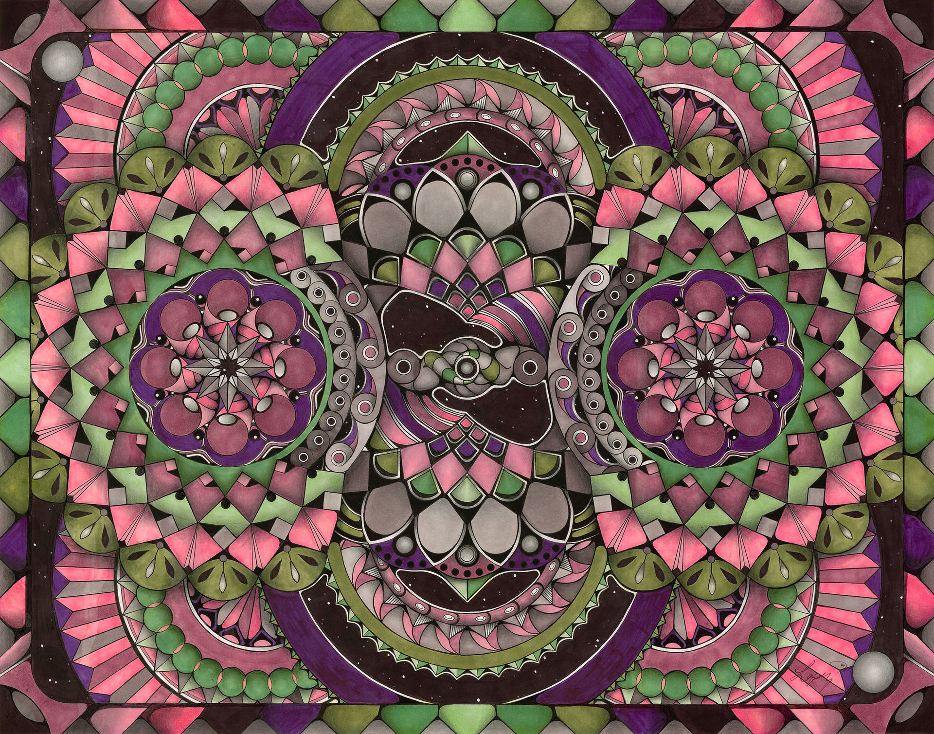 Since I was very young, I’ve always been keen to the dual nature of life in general. This is why the bulk of my work tends to incorporate geometric and organic elements, by design. I feel like I could get lost in my drawings; keep my eyes wandering on them for long stretches of time, and my goal is to share that with all of you open minded people out there. I sincerely hope to provide an escape for people via my artwork.